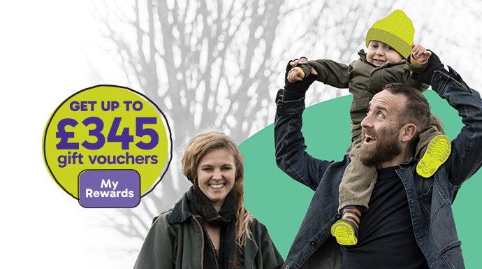 Get a My Rewards gift voucher up to £345 to spend at a range of your favourite places. Gift terms apply.