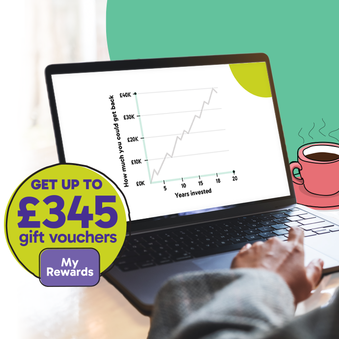 The more you choose to invest, the greater the value of your welcome gift. You can combine a monthly and lump sum payment to unlock a My Rewards gift voucher worth up to £345. You can redeem your voucher at numerous retailers throughout the UK including Argos, John Lewis & Partners, and Marks & Spencer.